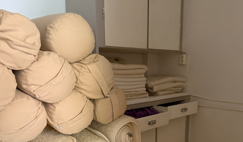 UTRUSTNING: Wifi. Ljudsystem via Bluetooth. Yogabolster, yogamattor, Ullmattor, Filtar, Block, Band, ögonkuddar och tennisbollar för 13 deltagare. Projektor och Whiteboard finns vid behov.